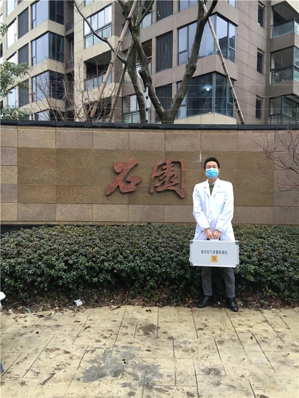 空氣治理專員在小區(qū)門口留影!