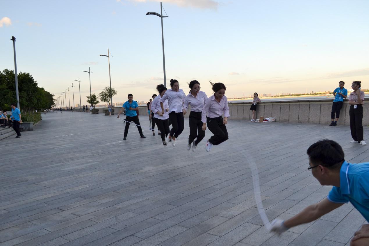 這就是藍粉軍團此次出行來城市陽臺的最終目的,我們進行了男子組拔河、女子組跳繩比賽,別看這兩項是老少皆宜的全民運動,但是只有團結一致,默契配合之下才能取得優(yōu)勝,這也正體現(xiàn)創(chuàng)綠家人眾志成城的團體精神。