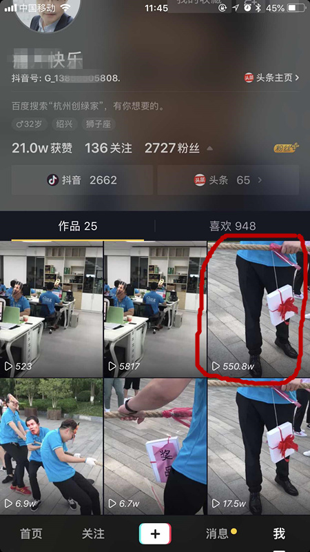 最后,讓大家看一看,550萬播放量的網紅視頻,是啥樣的,點擊下面視頻觀看↓