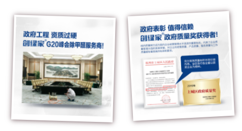 不僅如此,公司專(zhuān)業(yè)從事室內(nèi)環(huán)境健康領(lǐng)域近十年,潛心研究室內(nèi)健康問(wèn)題,把“創(chuàng)造綠色家庭,創(chuàng)造美好生活”的使命帶入千家萬(wàn)戶(hù)。截止目前創(chuàng)綠家已治理大型工程10000+,家庭用戶(hù)100000+,是杭州G20峰會(huì)、第75屆世界種子大會(huì)、溫州龍灣國(guó)際機(jī)場(chǎng)空氣治理服務(wù)商,公司也是杭州市上城區(qū)政府質(zhì)量獎(jiǎng)獲得者,得到了政府的認(rèn)可與表彰。
