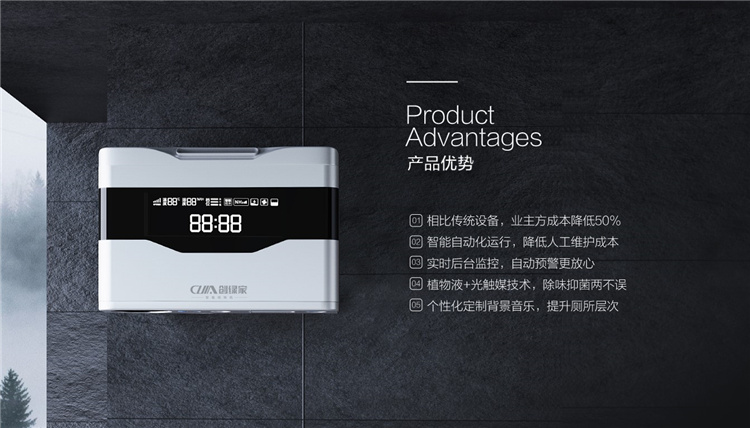 這幾年國家層面大力推進數字城市治理進程,中國城市數字治理正式進入2.0時代,其中,杭州的數字治理各項指標全面***,總指數位列全國***。創綠家響應國家數字化戰略,推出智慧廁所數字化改造方案,以自主研發的智能除味機、智能取紙機為核心設備,運用前沿的物聯網、大數據、云計算等技術,搭配各類傳感設備,實現廁所環境遠程可監控、云端可管理,可為客戶深度個性化定制后臺,提升廁所數字管理水平,助力數字城市治理。