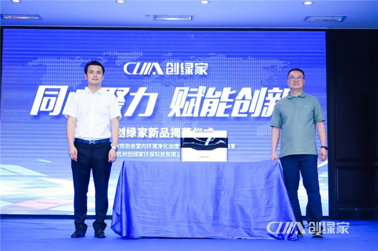 會上,邀請了中國凈化委領導楊軍秘書長和創綠家總裁孫劍上臺,為創綠家智能除味機揭幕,再次見證了又一批強大新品發布的歷史時刻。