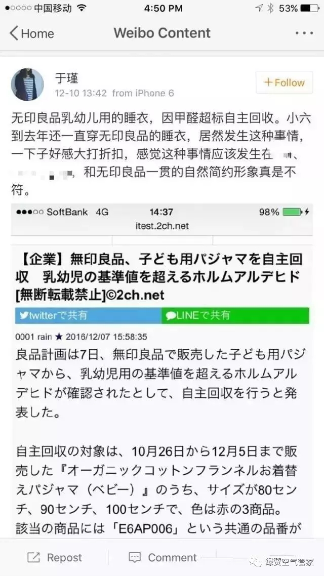 日前,無印良品日本官網發出一則自主回收通知,稱一款在售嬰幼兒用睡衣因檢測出甲醛超標急需召回: