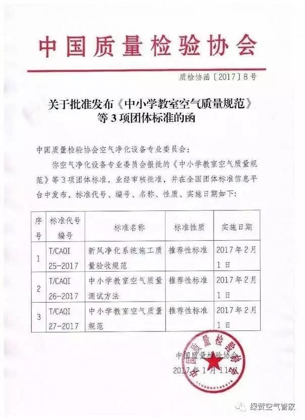 近日,由中國教育裝備協會提出,并由中國質量檢驗協會歸口,T/CAQI 27-2017《中小學教室空氣質量規范》正式批準發布。T/CAQI 27-2017《中小學教室空氣質量規范》是一項綜合性標準,標準主要針對幼兒園、中小學應對霧霾、室內污染如臭氧、氨、甲醛、總揮發性有機物等參數做出了明確的規定,為學生提供一個良好的學習環境。