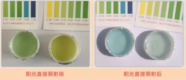 甲醛自測盒是一種通過顏色反應來體現(xiàn)甲醛含量的自我測試產(chǎn)品,主要對生活環(huán)境可能受到的甲醛進行快速半定量檢測,可對甲醛污染程度進行判定。自測盒類似于ph試紙,檢測原理等同于化學反應,大家可以通過顏色的對比來得到一個甲醛的分數(shù),如果測試的液體呈現(xiàn)藍色就是超標的跡象,顏色越深甲醛含量越濃。